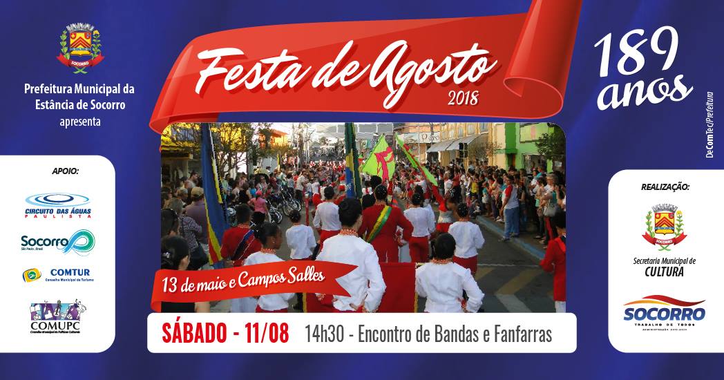 Encontro de Bandas e Fanfarras nas Ruas Campos Salles e 13 de maio em Socorro SP