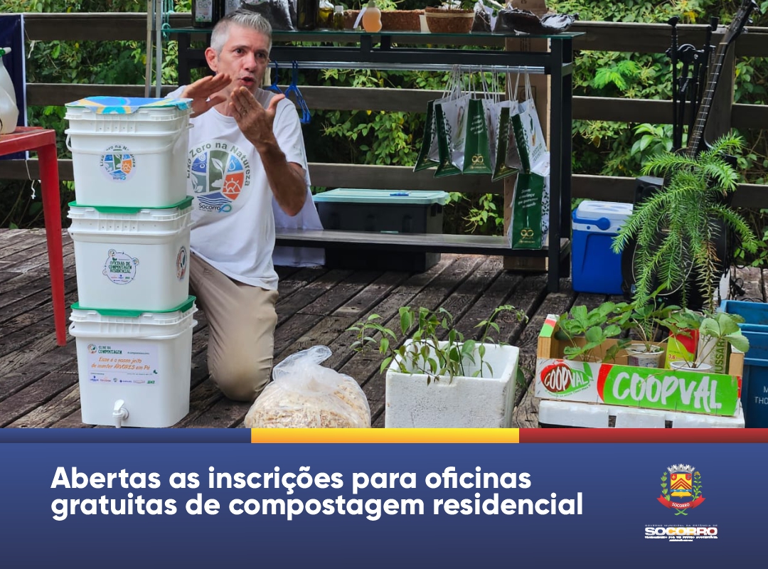 A Prefeitura Municipal de Socorro, através da Secretaria de Meio Ambiente e Desenvolvimento Sustentável, em parceria com empresários locais e o movimento popular Lixo Zero na Natureza, está promovendo oficinas gratuitas de compostagem residencial no projeto “#ComposteSocorro”. Essa iniciativa conjunta visa disponibilizar 40 oficinas de compostagem para comunidades, escolas e grupos empresariais, com o objetivo de popularizar essa prática utilizando materiais de baixo custo.