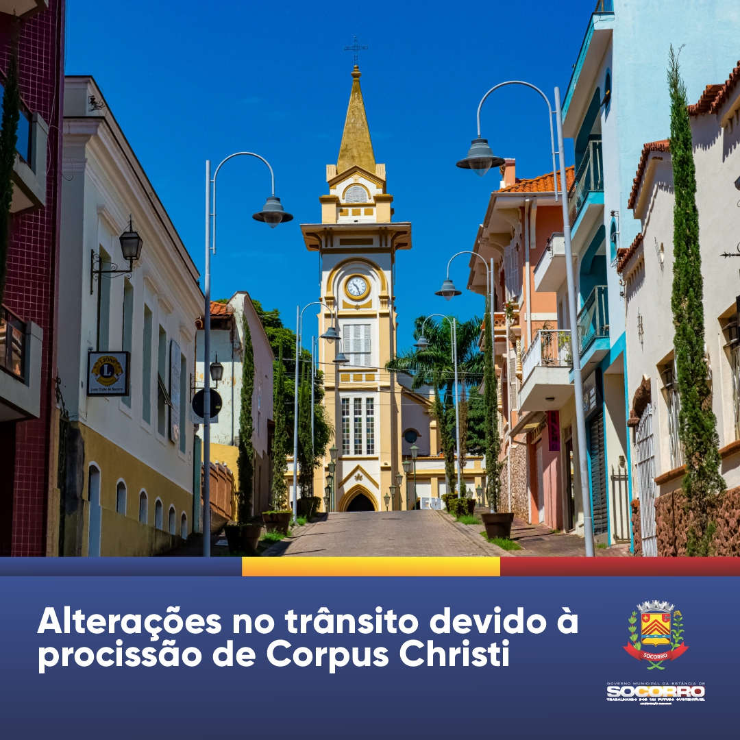 Em virtude da procissão e confecção do tapete de Corpus Christi, a Secretaria de Mobilidade Urbana informa que algumas ruas centrais e da Aparecidinha estarão temporariamente fechadas na próxima quinta-feira (30), das 07h às 18h30.