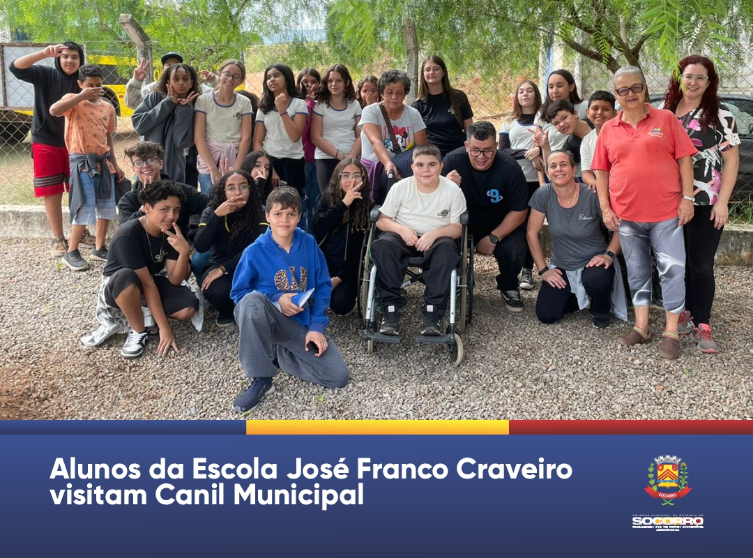 No último dia 16 de maio, alunos do 7º e 8º anos do Ensino Fundamental da Escola Estadual José Franco Craveiro visitaram o Canil Municipal da Prefeitura de Socorro. Essa visita faz parte do cronograma de aulas da disciplina eletiva “Amazing Animals”, com o objetivo de despertar nas crianças o amor e respeito pelos animais.
