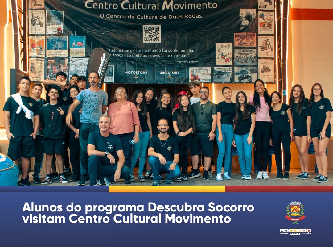 Dando continuidade às atividades do Programa Descubra Socorro, alunos do primeiro ano do ensino médio da Escola Estadual José Franco Craveiro participaram de mais uma enriquecedora experiência no último dia 6 de junho. Desta vez, a turma visitou o Museu Centro Cultural Movimento, onde puderam aprofundar seus conhecimentos e vivenciar a história do ciclismo e do motociclismo no Brasil de maneira interativa.
