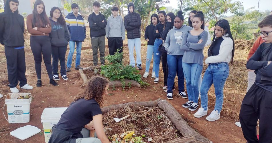 A ação envolveu alunos da Escola Estadual Professora Maria Odette da Silveira Leite Frattini, que tiveram a oportunidade de aprender, na prática, sobre o cuidado com o solo, o reaproveitamento de resíduos orgânicos e os processos envolvidos no ciclo da compostagem. Durante a visita, os estudantes também conheceram diferentes tipos de composteiras e participaram ativamente da construção de uma delas.