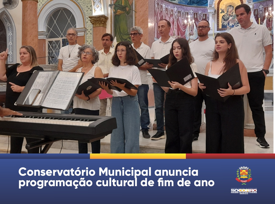 Entre novembro e dezembro, o Conservatório Municipal de Socorro “Maestro Luiz Gonzaga Franco” realizará quatorze apresentações com seus alunos. Os eventos, gratuitos, são promovidos pelo Instituto Cultura & Arte (ICA), Conselho Municipal de Políticas Culturais (COMUPC), Secretaria Municipal de Cultura e Prefeitura da Estância de Socorro, com apoio do Instituto Rede dos Sonhos, VM CDs, Pousada Encantos de Socorro, Regional Cartuchos, Canal Z e Toca do Gatão.