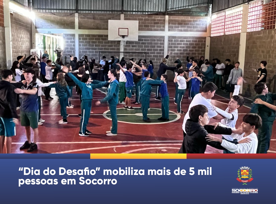 No último dia 29 de maio, a cidade de Socorro mostrou seu comprometimento com a saúde e o bem-estar ao participar ativamente do “Dia do Desafio”. O evento, que ocorre anualmente na última quarta-feira de maio, incentiva a população mundial a interromperem suas atividades rotineiras e dedicarem pelo menos 15 minutos à prática de exercícios físicos.