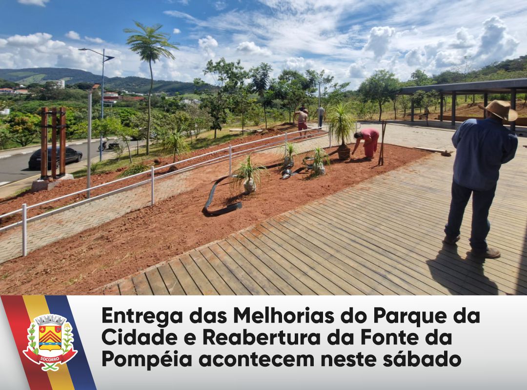 A cidade de Socorro terá um sábado especial com a realização de dois eventos importantes promovidos pela Prefeitura: a entrega das melhorias no Parque da Cidade João Orlandi Pagliusi e a reabertura da histórica Fonte da Pompéia. Confira abaixo: