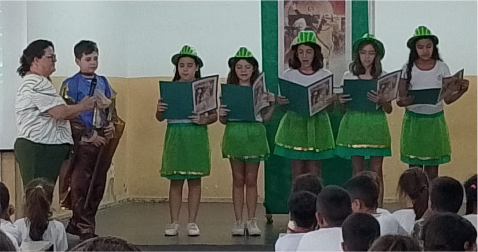 As celebrações incluíram leituras, jograis, apresentações musicais, vídeos educativos sobre o tema e a execução do Hino da Proclamação da República. Na Escola Coronel Olímpio Gonçalves dos Reis, os alunos e professores protagonizaram emocionantes apresentações que reforçaram a relevância histórica e cívica da data.