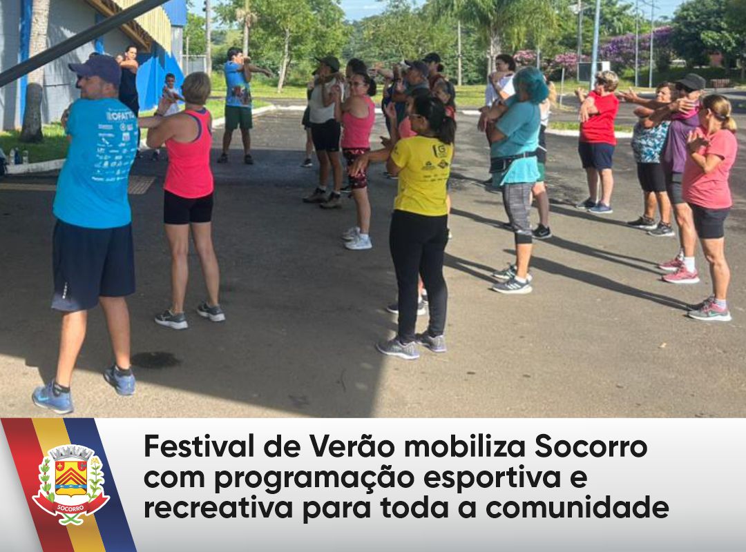 Socorro terá uma programação especial de verão esportivo com uma série de atividades gratuitas distribuídas ao longo da semana, contemplando manhã, tarde e início de noite em diferentes pontos da cidade. Entre os dias 20 e 23 de janeiro a agenda inclui aulas de ginástica em locais como praça do fórum, ginásio de esportes e parque da cidade, caminhadas ao ar livre, atividades recreativas direcionadas a públicos diversos e modalidades esportivas como voleibol adaptado, muay thai e karatê.