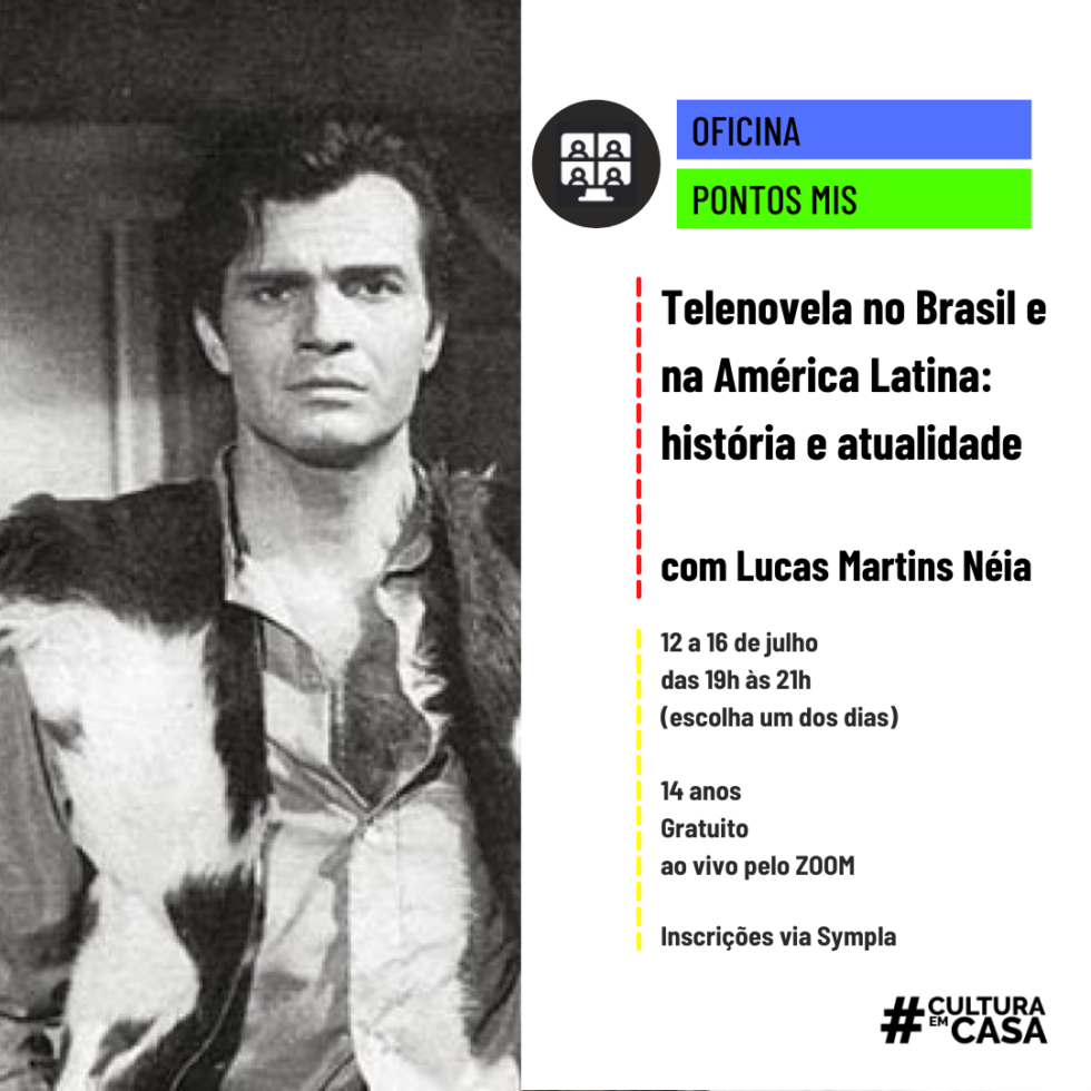 A Secretaria Municipal de Cultura e o Museu da Imagem e do Som (MIS), por meio do projeto Pontos MIS, abrem as inscrições para a oficina, “Telenovela no Brasil e na América Latina: história e atualidade com Lucas Martins Néia”. As inscrições estarão abertas até dia da oficina, e podem ser realizas através dos links disponibilizados. O evento será totalmente gratuito e online.