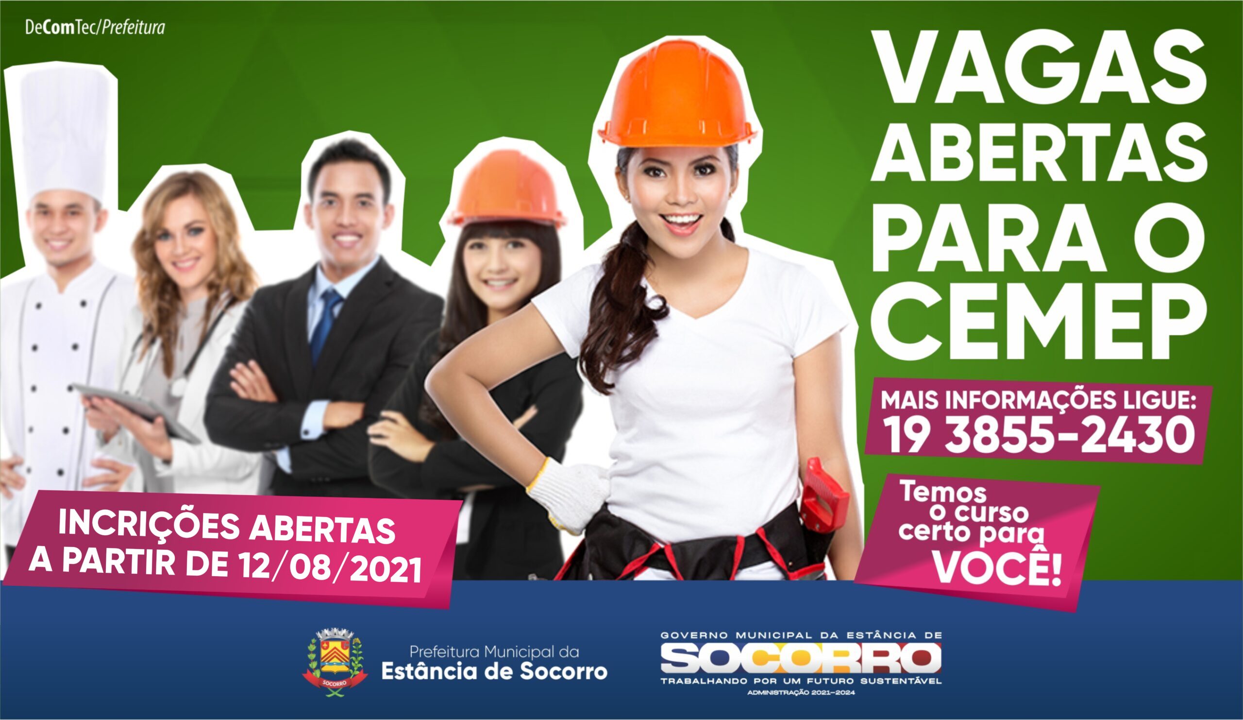 A Prefeitura de Socorro através do Centro Municipal de Ensino Profissionalizante (CEMEP), em parceria com o SENAI, abre as inscrições para os cursos do segundo semestre de 2021.