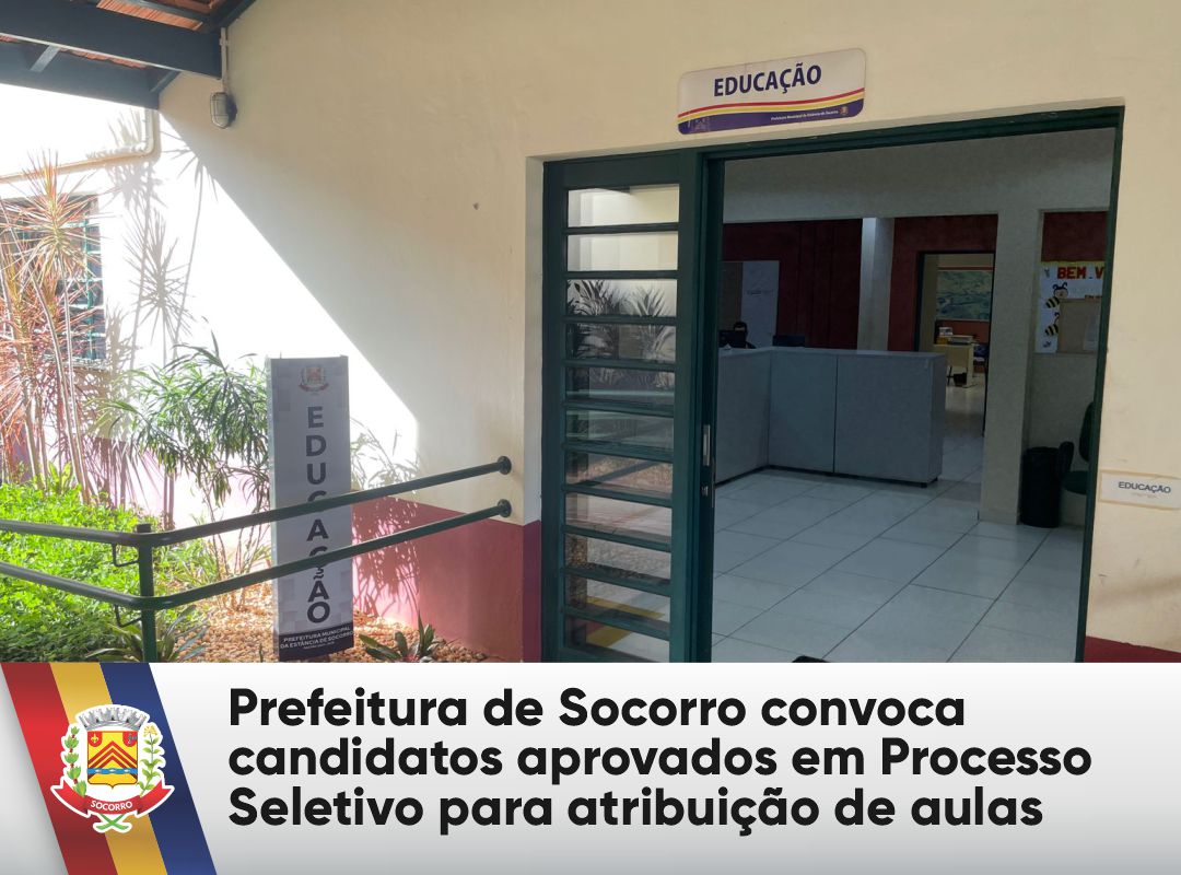A Prefeitura Municipal da Estância de Socorro, por meio da Secretaria Municipal de Educação de Socorro, publicou editais de convocação dos candidatos aprovados no Processo Seletivo nº 001/2025 para participação na atribuição de classes e aulas, visando à contratação temporária de profissionais da área da Educação.