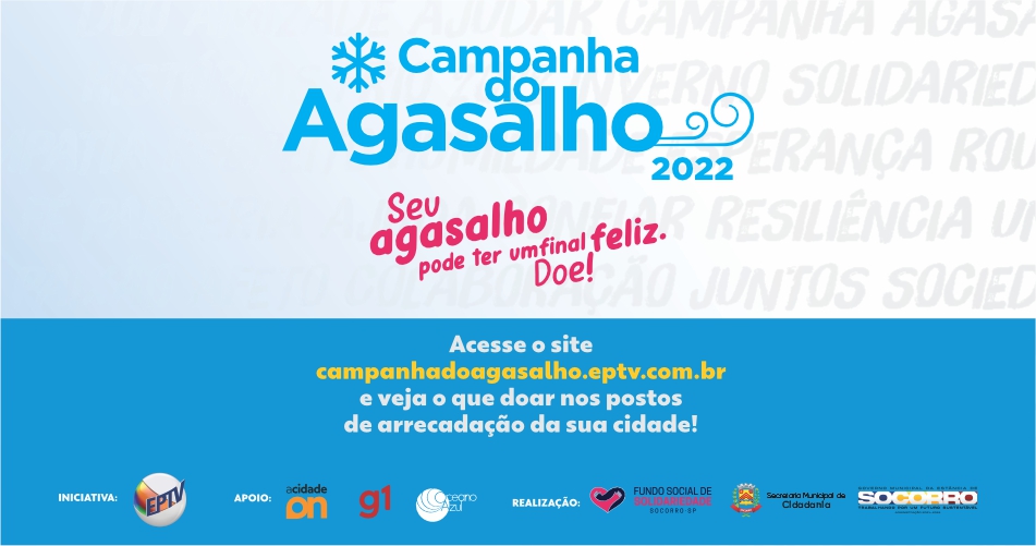 A Prefeitura de Socorro, por meio da Secretaria Municipal de Cidadania, vai participar da edição da “Campanha do Agasalho 2022”, organizada pelo Fundo Social de Socorro e Grupo EPTV.