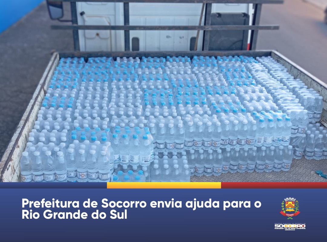 A Prefeitura de Socorro enviou nesta terça-feira, um total de 420 fardos de garrafas pequenas de água mineral de 510 ml e 122 fardos de 1,5 litros, para ajudar os desalojados pelas enchentes que afetam diversos municípios do Rio Grande do Sul.