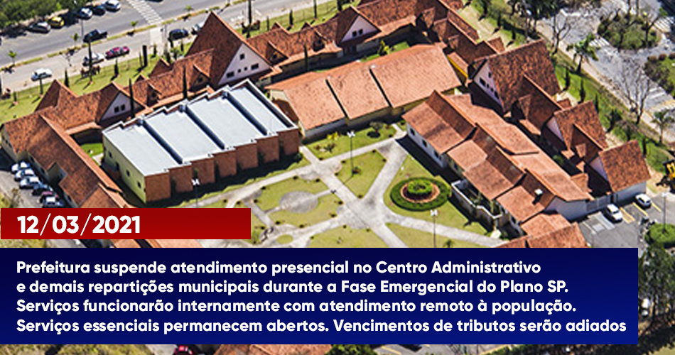A Prefeitura de Socorro decretou, no final da tarde de sexta-feira (12/03), a suspensão do atendimento presencial no Centro Administrativo Municipal “Prof. Imir Baladi” e demais repartições públicas municipais, durante a vigência da Fase Emergencial no Estado de São Paulo, mantendo-se os trabalhos apenas internamente.