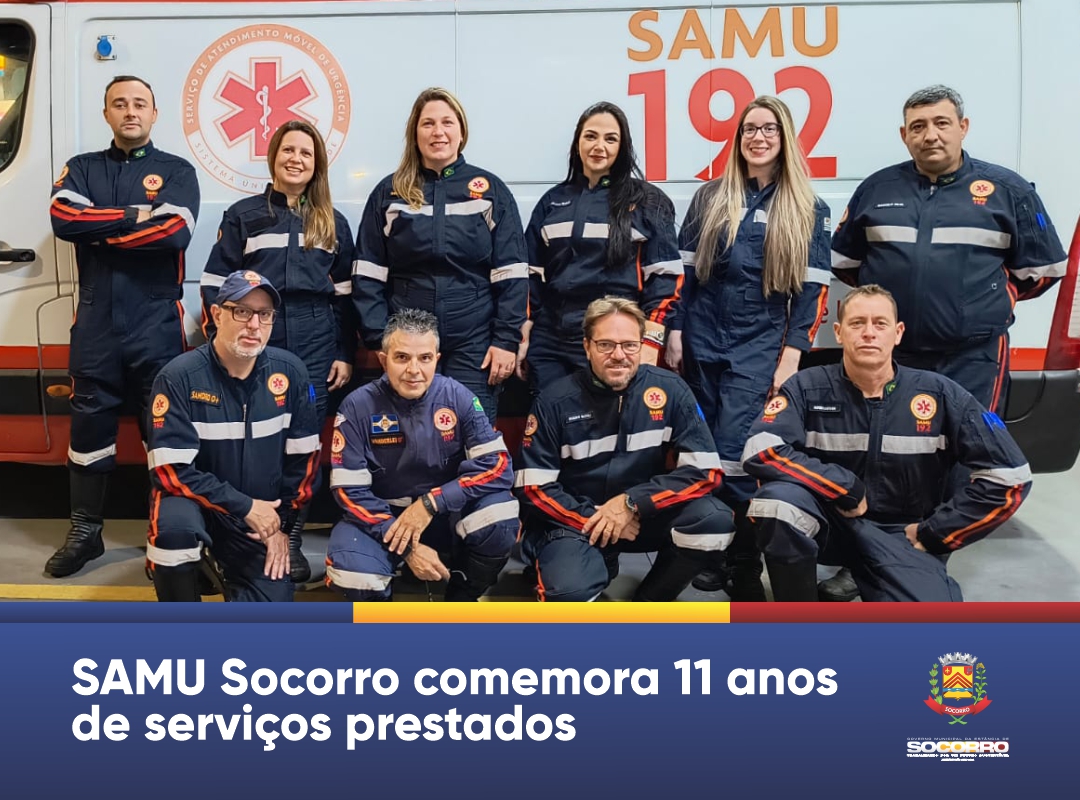 No dia 20 de dezembro, o Serviço de Atendimento Móvel de Urgência (SAMU) de Socorro celebra 11 anos de atuação, marcados pela dedicação ao atendimento de urgências e emergências no município. Desde sua implantação, o serviço já realizou mais de 34 mil atendimentos em Socorro, sendo mais de 4 mil somente neste ano, com uma média mensal de 360 atendimentos.