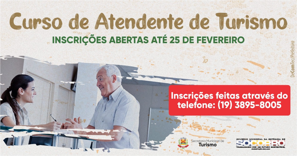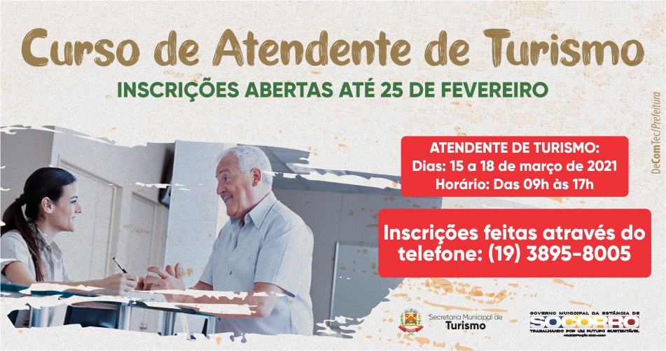 A Prefeitura de Socorro através da Secretaria de Turismo abre as inscrições para o curso de atendente de turismo. Curso totalmente gratuito.