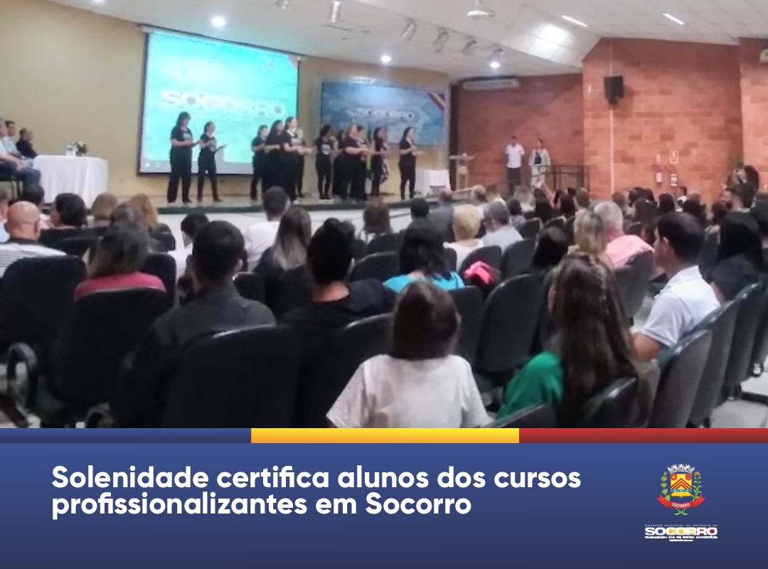 Na noite desta quinta-feira, 22 de fevereiro, foi realizada a solenidade de certificação dos alunos dos cursos profissionalizantes realizados pela Prefeitura de Socorro. O evento contou com a presença dos formandos e familiares, assim como do prefeito Ricardo Lopes; do presidente da Câmara Municipal, Airton Benedito Domingues de Souza; da primeira-dama, Edvânia de Faria Lopes; além de secretários, gestores e vereadores.