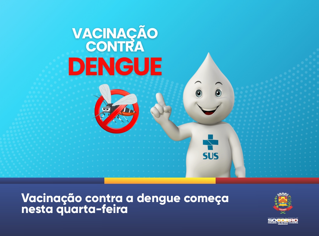 A Secretaria de Saúde de Socorro e a Vigilância em Saúde informam que a vacinação contra a dengue começa na próxima quarta-feira (15), nas seguintes unidades de saúde: ESF Aparecidinha, ESF Santa Cruz, ESF Jardim Araújo, ESF Vila Palmira e ESF Oratório. O atendimento é das 8h às 15h. O público alvo dessa campanha são primeiramente crianças de 10 e 11 anos.