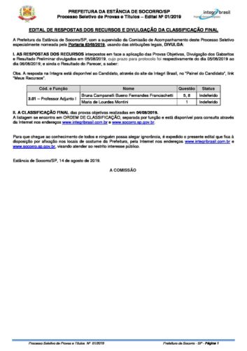 6. PS – EDITAL DE RESPOSTAS DOS RECURSOS E DIVULGAÇÃO DA CLASSIFICAÇÃO